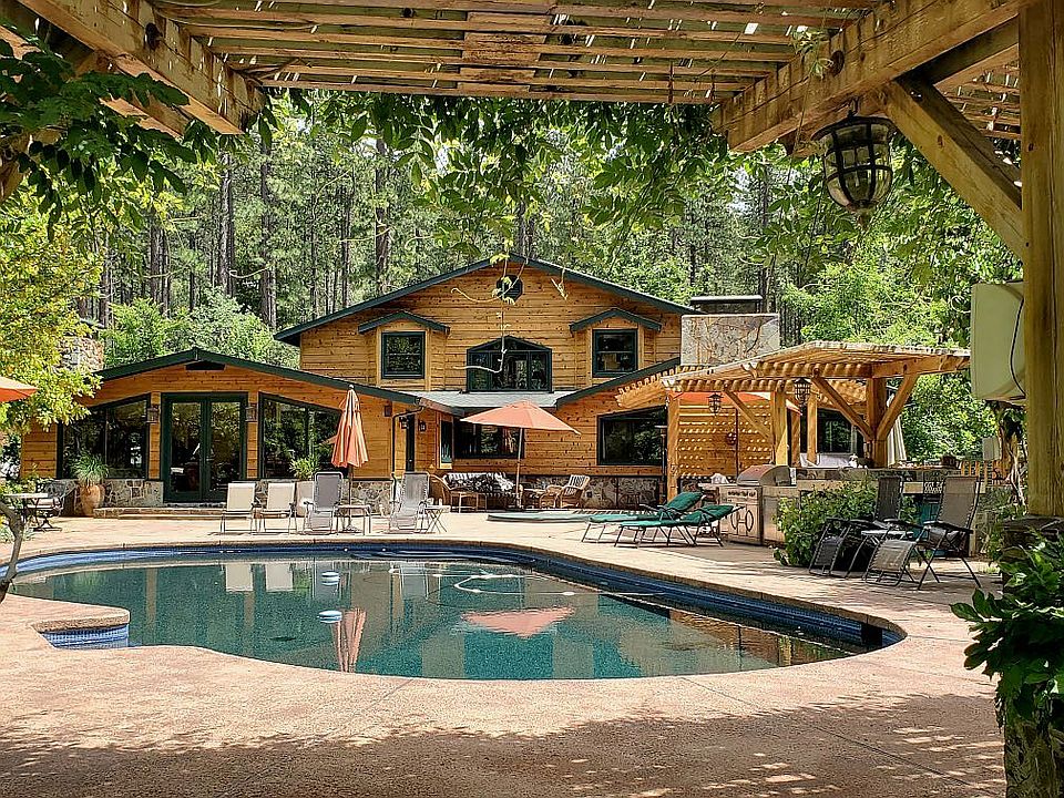 This gated estate is located in the highly sought-after Willow Valley area, on the top of the hill with end of the road privacy, offering an oasis to one who looks for solitude yet close to town. This well-designed “Craftsman” style home, is suitable for outdoor living, with pool and hot tub, outdoor kitchen, including multiple gardening areas, 1/3 acre trout pond, which serves as a holding tank, turtle sanctuary, and host to seasonal wild birds. There is also a landscape designed ornamental pond at the front of the home. Completely upgraded chef’s kitchen and appliances in 2022. Lots of windows and skylights in living room, dining room and kitchen bringing in loads of natural light. The master bedroom has a gas fireplace, large bathroom, large walk-in closet, and French doors that open to its own private deck with view of the trout pond . The guest room has an updated en-suite bathroom with travertine tile. Enjoy year-round NID water, (with access to the Snow Mountain ditch trail) a strong well, solar-owned roof, and natural gas (no propane tank) Covered RV and boat parking. Home has been Meticulously loved and cared for. Shown by appointment only.