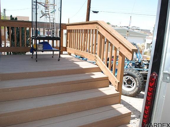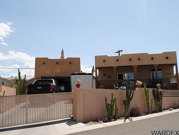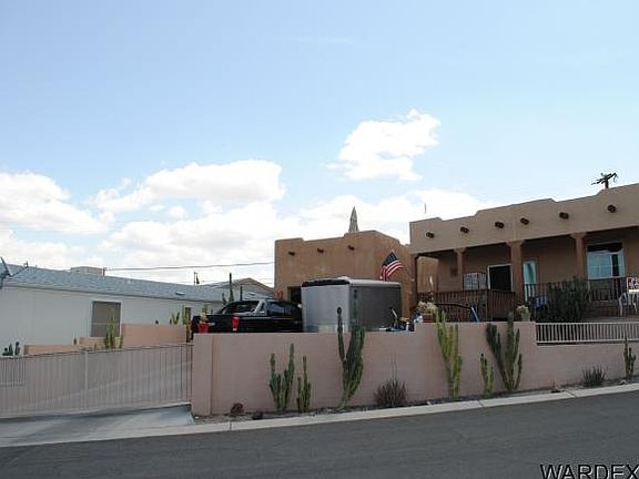 Enjoy the River view from the upstairs deck of this very awesome home. This 2004 Santa Fe Style Manufactured home includes 3 bdrms, 2 bths, spacious kitchen with bar area, 9 ft ceilings, 2x6 frame and dual pain windows. Great vacation home totally fenced in with block walls, metal electric gates and lots of parking. The 15x30 garage is perfect for your boat and toys. Enjoy the water access including sandy beach, docks, launch ramp, cabana and BBQ's. Must see this home to appreciate all it has to offer.