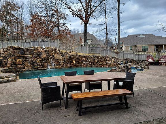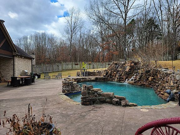 Custom built home with resort style pool and patio seating areas on over half an acre of manicured paradise, which included a beautifully fenced in large backyard with 2 wrought iron gates. Heated, Gunite pool with natural stone waterfalls, swim outs, diving rock/pad and in pool lounge areas. Spacious rear patio with gas fireplace, TV area and remote controlled retractable screen. Most windows in the home have brand new screens. Beautiful open concept family and entertainment home. High end kitchen, Jenn-Air appliances, six burner gas stove, second sink area for food prep, spacious hearth room and dining areas all overlook the backyard. Spacious luxurious master suite on main floor with large dual headed walk through two doored shower and large jetted tub with chandelier. Second bedroom suite on main floor with handicapped large open dual headed luxury shower area. Entryway, living room and hearth room all have 2 story ceilings and great views of the pool. Side entrance with separate deep attached 3rd. garage. Two of the upstairs bedrooms have large separate sink areas with a jack-n-Jill bath between them, The third upstairs bedroom has a full bath. Gigantic bonus room upstairs overlooking downstairs with 2 sets of French doors, balcony, and is plumbed for a wet bar. Lots and lots of storage, entry to the two spacious attics from garage or upstairs room. Beautiful wood floors and large tiles throughout most of the main floor. Speaker system inside and out, surround sound for television in main area, elaborate security in home system, extra tall beadboard doors throughout. Mudroom area with room for boots/gloves/etc. Half bath off kitchen area. Large laundry area with extra storage, full kitchen sized sink and fridge. 2 entrances from garages, high quality epoxy garage floors. Wrought iron railings throughout. Gorgeous chandeliers and huge light fixtures. Fireplace in the family room area. Extra tall windows throughout. 5 and 6 inch crown molding, wainscoting and floor molding throughout. vaulted ceilings in many rooms and excellent sprinkler system outside for gardens and grass areas. Granite countertops in all 5and 1/2 baths, kitchen and bar area. Nothing needs to be done, move right in. Beautiful home ready for a new family being sold by the owner, willing to work with realtors for commissions.