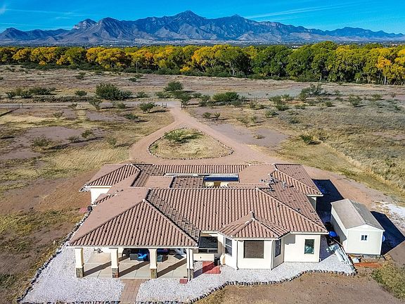 Amazing custom home with panoramic mountain views and an ASSUMABLE VA LOAN at 2.875%! Nestled above the San Pedro Riparian area, this 3BD/3BA, 2,246 sq ft home combines comfort, style, and thoughtful upgrades. Enjoy high ceilings, tall wood doors, and an open kitchen with stainless appliances, double ovens, gas range, pantry, and breakfast island. The spacious primary suite features a spa-like bath with dual glass vessel sinks, garden tub, and walk-in shower. Recent updates include fresh interior/exterior paint, upgraded lighting, custom blinds, landscaping, irrigation, and a remodeled indoor Kiva fireplace. Two tandem garages, and electric gate. Nearly 4 acres of peaceful desert beauty with abundant wildlife and outdoor activity all around the area, make this home truly one-of-a-kind!