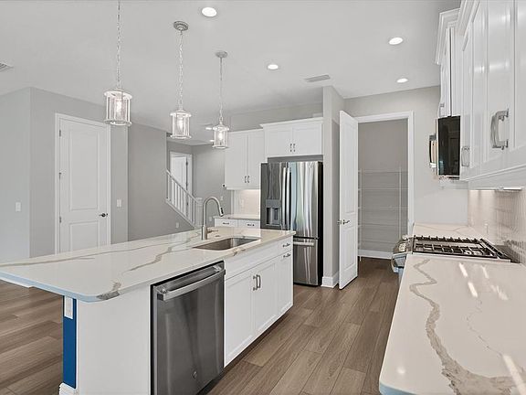 - Cathedral Ceiling(s), Eat-in Kitchen, Individual Climate Control, Living Room/Dining Room Combo, Open Floorplan, Primary Bedroom Main Floor, Solid Surface Counters, Stone Counters, Thermostat, Walk-In Closet(s)
