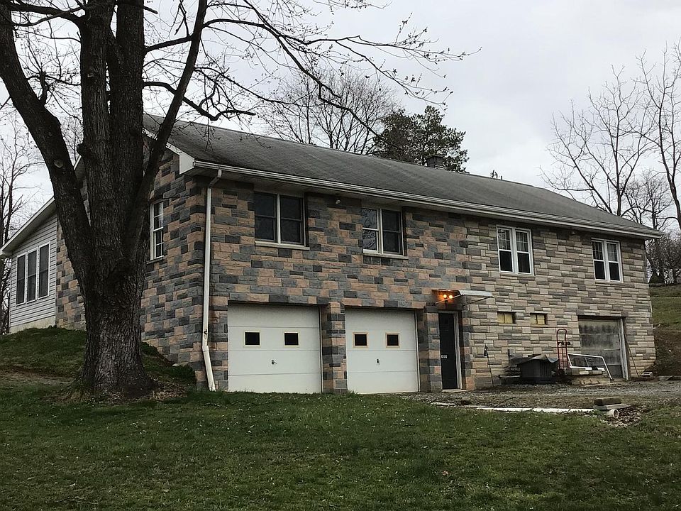 Situated on almost 2.5 acres (2.35), this raised ranch sits up above the road for a great view. Home has over 2000 sq ft with 3 bedrooms and 2 full baths. The house sits over the 3 car garage which also has over 2000 sf. Great space with garages and lot size lending itself to large parking area for vehicles, camper, boat and work vehicles. House needs some repairs and upgrades. Large sun porch on rear runs the entire length of the house. Oil, forced air heat, central air. No refrigerator. Property is bordered by woods in the back. Only 2 minutes from the Grantville I81 exit.