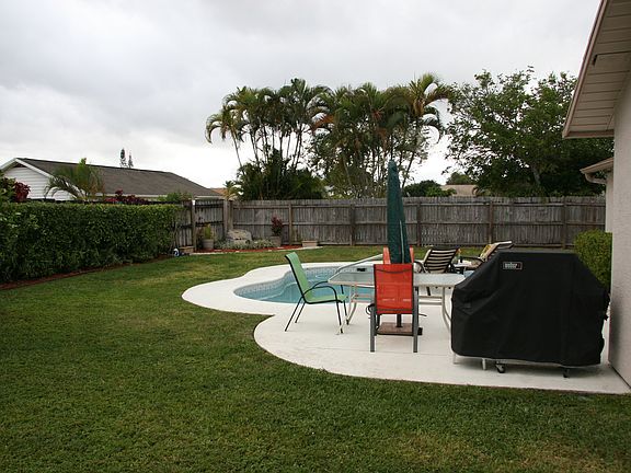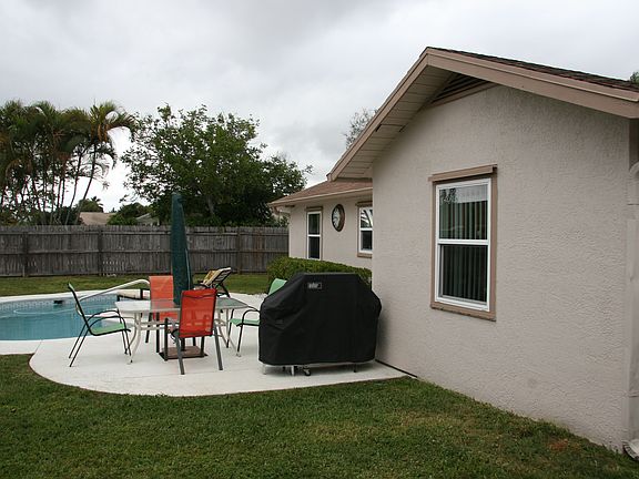 3br 2 bth Neighborhood Description Quiet Family area. Close to all shopping, services and Malls ! Beautiful 3 bedroom 2 bath pool home with converted garage! Large deck around pool, Fully fenced yard, 2 sheds, large patio stone drive on side of house for boat parking, Ceiling fans in all rooms, All rooms carpeted, den and kitchen tiled, 3mth old washer/dryer. refrigerator w/ice maker, electric stove, built in microwave, all windows double paned impact rated with additional shutters to protect them! Garage door, front door and side door impact rated. 3 tier fountain in back yard. Well maintained with fruit and palm trees. A true must see!