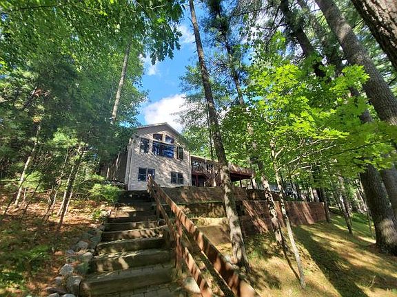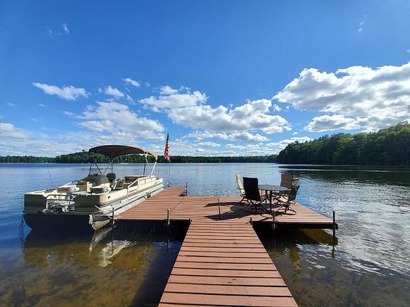 A beautiful homestead style property, set on the scenic shore of Lower Kaubashine Lake, this 4Bd/3B home boasts a luxurious sand shore with a pier deck, swimraft, and most furnishings included. Main floor of the house features a tile entry with coat closet, kitchen with hickory cabinets and stainless steel appliances, full bathroom, living room with a gas fireplace, spacious Master bedroom suite with full bath connected to the sunroom with access to the deck, two additional bedrooms and a laundry area with access to attached 2+ car garage. Lower level features hydronic in-floor heating with a wide open Family/Rec room, an Exercise room, fourth Bedroom, Full bath, and utility area.