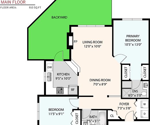 - Total interior livable area: 910 sqft