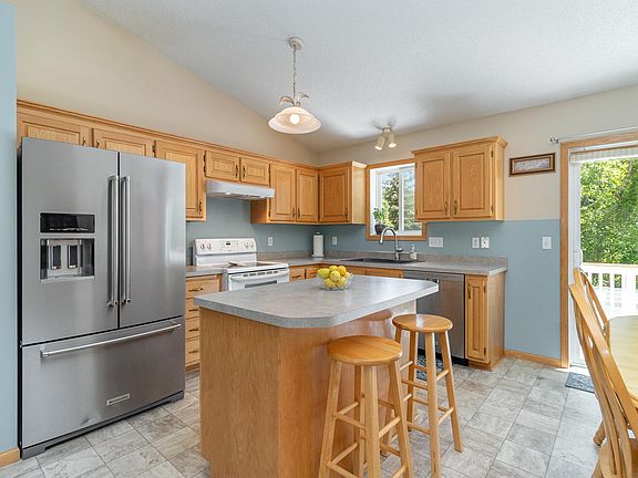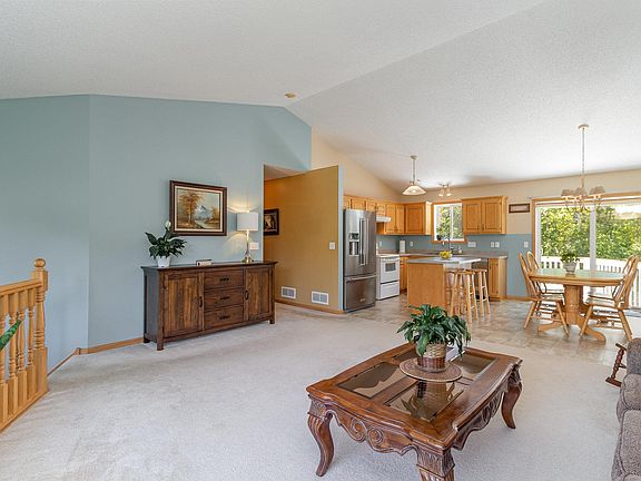 Welcome to this exquisite home in Park Pointe, featuring vaulted ceilings in the wide open great room and an inviting foyer with 12-foot ceilings. Each of the three spacious bedrooms boasts walk-in closets, offering ample storage. The hallway includes a built-in pantry, and the master bath is complemented by a built-in linen closet, adding to the convenience. Enjoy pure water with the whole-house filtration system. Outdoor enthusiasts will love the two parks and scenic walking trails. The charming deck provides a tranquil retreat. The walkout lower level features a knotty pine family room with a gas fireplace, opening to a patio under the deck, along with a pergola perfect for entertaining or relaxing. This home blends comfort, functionality, and natural beauty, creating an ideal living space for any lifestyle.