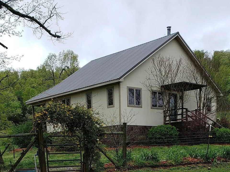 Welcome home to this incomparable Ozark Mountain Retreat and working Ranch at Mountain View, the seat of Stone County, and the folk music capital of the world. These 60 acres with and additional 15 available on a state highway are just minutes from Mountain View’s charming court square and White River fishing. Mountain View is also home to the Ozark Folk Center, Blanchard Springs Caverns and countless seasonal festivals that take place downtown including: The Folk Festival, The Outhouse Races, and Music Mountains and Motorcycles. Mountain View is also noted for impromptu gatherings of musicians playing together during mild weather all around the quaint court square. The property is protected from the road by a woodland barrier, secluded and nestled in your private valley. 50 of the 75 acres are pastures fenced and cross-fenced into 9 fields each with a water source. 5 stocked ponds and two creeks on the property attract wild life and waterfowl including an occasional Bald Eagle. Just the right mix of grass and trees provide privacy and woodland beauty throughout the property. The hay field produces 60 round bales or 550 square bales per cutting, and there is plenty of room to store it and all the ranch necessities in a maintained 250x50 aluminum chicken house with a concrete center floor and sound roof. There are 2 livestock barns 30x24 and 48x36. The larger has a concrete hallway and concrete floor workroom, four stalls, hay storage and loafing area. There is also a large fenced riding arena with all weather footing. The residence on the property was constructed in 2007 by one of the area’s most respected custom builders. Designed for little maintenance it features concrete siding, Cyprus trim, metal roof, Pella windows and built on a crawl space. The very comfortable one and one-half story, livable floor plan includes a vaulted ceiling living room, kitchen/family room, dining room, 2 bedrooms both with large walk in closets, 2 baths, 2 porches, 2 huge separate storage rooms, and a utility room with a coat closet which leads to the attached 2 car carport with a potting area. The residence also features custom cabinetry through out. The floors are all ceramic tile and tongue and groove hardwood. Mountain views from every room in the house are simply stunning. Watching deer graze is an every day event. The house yard over looks two ponds is fenced and beautifully landscaped with dozens of mature perennials for year round color and blooms from February to first freeze. Quality construction, heat pump, furnace and Vermont Casting woodstove and maximum insulation result in the low, average utility cost of $70 a month. There are two wells on the property: one open that was completely rebuilt in 2011 along with an insulated well house. Municipal water runs across the 1250 feet of road frontage. Stone County has one of the lowest property tax rates in the state with a mileage rate of 41 as compared to Pulaski County with a mileage rate of 58.