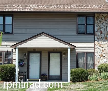 SCHEDULE A SHOWING ONLINE AT: showmojo.com/lh/dd3e0d904b Super Cute 2-level 2 bedroom condo at the end of a quiet cul-de-sac. Convenient to Union Cross area & I-40. Huge kitchen, recently painted throughout, w/d connections, & nice sun-room located off the back. Community features a neighborhood pool and tennis courts. Water included in the rent. All electric. Security Deposit: $715 Lease Admin: $200 You can view this place on your own at a time that is best for you. To do this, copy and paste the following link in your browser: https showmojo.com/l/dd3e0d904b Or Call 336-355-6699 to schedule a showing today! Marketed by Real Property Management of the Triad 2 Story House All Electric Utilities Central Air Pool Stove Included Washer/Dryer Hookups Water Covered In Rent Yard Maintenance Included