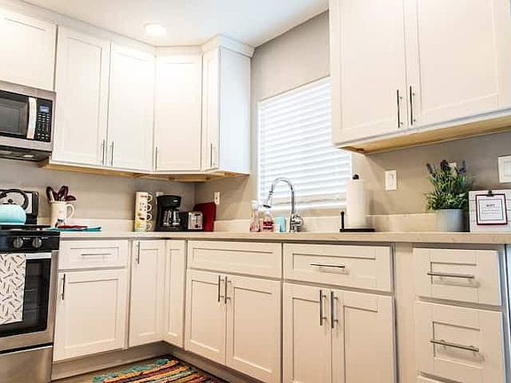 Newly Renovated In-Law Unit with a huge new full sized kitchen with lots of upgrades! This fully furnished and decorated 1 bedroom / 1 bathroom unit is conveniently located in an up-and-coming Oakland neighborhood just minutes from Downtown Oakland, San Francisco, 880 & 580, Bart (15 minute walk), Coliseum, Oracle and the Oakland Zoo. This detached private entry in law suite includes onsite parking, shared onsite laundry facility, all utilities included and free professional monthly cleaning service with linen and towels change. It also includes a full size kitchen, heating unit, in a fully gated property. The AC/ Heating unit is soon to come! This cozy home is perfectly located in the Bay Area! This boutique style housing unit is created for the corporate traveler who is looking for a clean, cozy, homey environment to spend their time. Hotel-like amenities including sheets, towels, paper products, soaps, and shampoos will make you feel right at home. We also provide a start of coffees, teas, snacks and breakfast in our kitchen with all the extras. The kitchen will provide everything needed to prepare gourmet meals including full sized appliances, gas range/stove, coffee pot, and toaster. We also offer a work area with fast reliable internet for work/ study at home. Enjoy sleeping peacefully in our comfortable new queen size bed with 100% luxury cotton linens, fluffy duvet and extra blankets, and 4 new pillows for your own comfort. A sleep machine is provided to help you sleep through the city noises. The unit also includes plenty of storage for long term guests. The owners/managers live on the property and provide easy communication for any special requests needed. No smoking or pets allowed in or on the property. The tenant is required to pay for their background and credit check during the screening process. This will be a month to month lease and the tenant is required to pay a security deposit and first month rent prior to moving in.