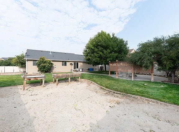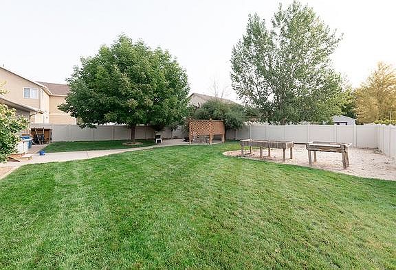 Convenient Location: close to schools, shopping and dining. Beautiful open-concept home with vaulted ceilings, brand New Paint, Laminate Flooring, and new Stainless Appliances 2019. Formal living/dining or office space. Kitchen has island bar and corner pantry, and is open to cozy family room with corner gas fireplace. Owner's suite has private bath and WIC. Bathrooms have faux marble surrounds. Basement has been framed for bedroom. Great basement layout. Oversized Garage (30' deep on one side) with built in shelves and man-door, plus 25.5' wide x 36' long gravel RV parking behind fence. Lot may be large enough for additional garage space on South side. The yard is fabulous, with full vinyl fence, auto sprinklers, 2 patios, fire pit included and sand play area for the little ones, plus one pear and two plum trees.