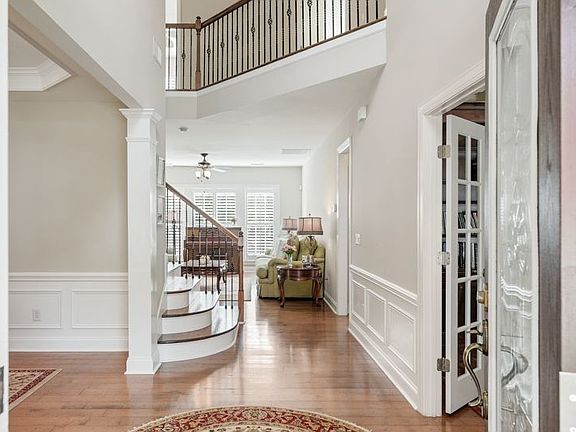 Nestled in a coveted Cool Springs cul-de-sac, this property offers a level lot near Publix, I65, Restaurants, & Parks. Outdoor living is a delight with a large patio, pergola, and a charming wood-burning stone fireplace. The original owner has maintained this home, providing sought-after features. Custom wood plantation shutters throughout the home for privacy, fenced backyard, & irrigation system. The main level boasts an office with French doors and gorgeous built in cabinets, hardwood flooring, a guest bedroom w/ full bath, and a practical 3-car garage. The kitchen is spacious with an island sitting area, complemented by a formal dining room featuring a butler's pantry. Upstairs, discover the primary bedroom, 3 secondary bedrooms w/ bath, and a bonus room. This home seamlessly blends classic charm with modern functionality, creating an inviting space for comfortable living.