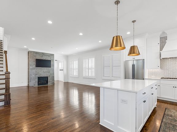 Storybook Cottage on quiet street. Beautiful brick exterior with front porch and up lighting at night. Open floor plan with hardwood floors up/down, 3BR, 3.5BA, plantation shutters throughout, Classic white kitchen with cabinets stacked to the ceiling, marble herringbone tile and gorgeous windows over the sink! Bosch appliances, floor-to-ceiling tiled fireplace surround, storage racks/cubbies/wall units in garage, nice side yard space, tankless water heater.