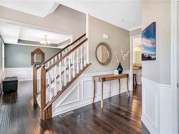 Beautiful Craftsman style home located in the desirable community of Sonoma Ridge. Great curb appeal on a cul-de-sac location! Stunning hardwood flooring throughout main level. Gorgeous kitchen w/white cabinetry, granite counter tops, stainless appliances including custom stainless hood, and large center island. Sunroom w/cathedral ceiling. Family room w/gas fireplace. Formal dining room w/Trey ceiling and wainscoting. First floor den w/French doors. First floor laundry room w/tiled floors. Master Suite w/walk-in closet and 12x8 sitting area (or closet), master bath w/double sink vanity, garden tub w/tile surround, walk-in shower and custom tile floors. Spacious three other bedrooms and full bath w/custom walk-in shower. Beautiful tiered deck w/custom wired railing. Sitting area under deck. Gorgeous wooded views. Community includes pool, clubhouse and fitness room. Great location - close to shopping and dining. Short drive to airport and downtown Pittsburgh. A must see!