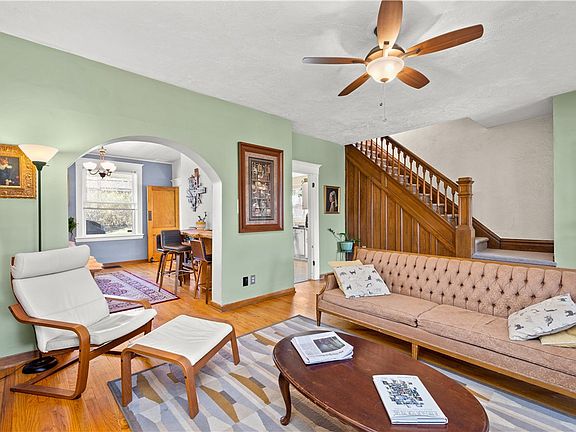 Excellent location right off the Boulevard, this spacious home is on a double lot w/ a wide driveway for 6 cars. The inside is inviting and homey! The room sizes are generous, with lots of natural light. Original charm abounds with beautiful hw floors, stained glass, and original woodwork on stairs. There is a spacious kitchen that opens onto a patio and large fenced in yard. The large dining room had a custom hand-carved bar, THe oversized living room is idel for entertaining and there is an 4 season sunroom at the front of the home. The second floor has an updated full bath, two huge bedrooms + an 8x8 bedroom that would make an excellent office, nursery or walk-in closet. On the 3rd floor you'll find a full bedroom plus a bonus room which would make an ideal office or 2nd full bath