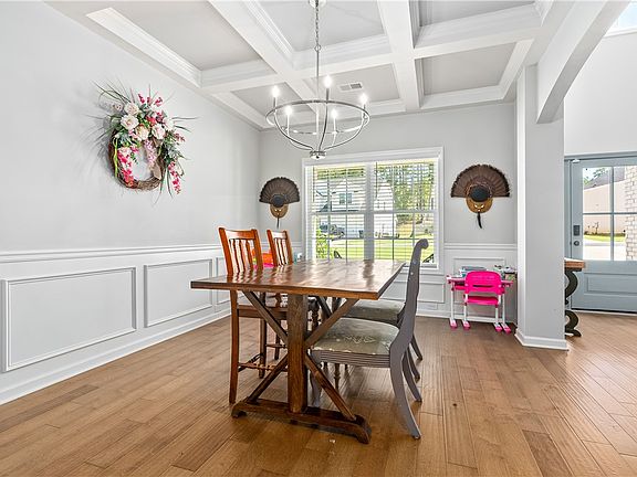 Located less than 5 miles from Auburn University, you'll enjoy easy access to campus, local amenities & I-85/HWY 280. This move-in ready gem has 4 spacious bedrooms & 2.5 baths, making it the perfect size. Step inside to find a stunning formal dining featuring coffered ceilings & wainscoting that could easily be converted into a home office. It's connected to the kitchen by a butler's pantry or unique dry bar area w/custom shelving that adds a touch of elegance & functionality. The heart of the home is the beautifully designed kitchen, complete w/granite countertops, stainless appliances & an inviting island w/seating. The warm living room features a cozy gas fireplace. Upstairs, the primary suite offers a french door entrance, sitting area & ensuite bathroom w/tiled shower, garden tub & dual sinks. Three additional bedrooms & a full hall bath complete the upper level. Moving back downstairs, enjoy cozy evenings on the large screened back porch w/fireplace or relax on the patio.