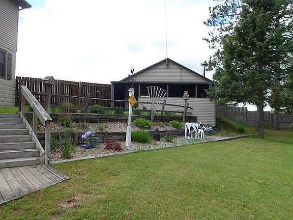 Property offers more than meets the eye. Home main level with living, eat-in kitchen, formal dining (which could easily be turned into a bedroom), bedroom and full bath. Second story added in 1997 has large master bath with two sink vanity and large walk in shower, two large bedrooms, that can accommodate bed, dressers, sitting areas or if property is used as recreational/extended family get away, line up bunks for camp style sleeping. Full walk-out basement has finished family room, laundry, workshop and plenty of storage space. 2 1/2 garage with second level that is partially finished. Use for overflow sleeping, crafts, work out space, perhaps a business. Second garage with wood burner has parking for one vehicle and a workshop. Landscaped back yard is fenced in for children/pets, has some producing apple trees, garden area. Paved drive. Natural gas heat.