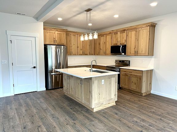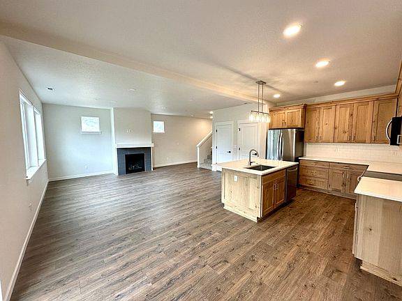The spacious layout downstairs includes a beautiful kitchen with a deep farm house sink, quartz countertops and tons of cabinet space.