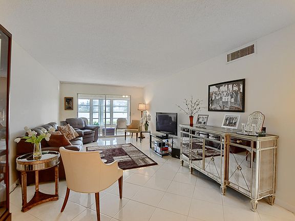 CORNER FIRST FLOOR with BEAUTIFUL WATER VIEWS! Amazing bright, open, spacious, condo with stunning waterviews.White tiled modern flooring,throughout. Gorgeous furniture throughout, included. Leather sofa bed in living room.Window enclosed patio with neutral clean tiling, for all weather usage of Florida Room. Updated white cabinets and raised ceiling and eat in kitchen. One year old stove, microwave and fridge. A.c. about 3 years old. One bathroom has shower,other one tub. Live here or Rent, seasonally or annually, right away! This is not possible on some Century Village Associations.