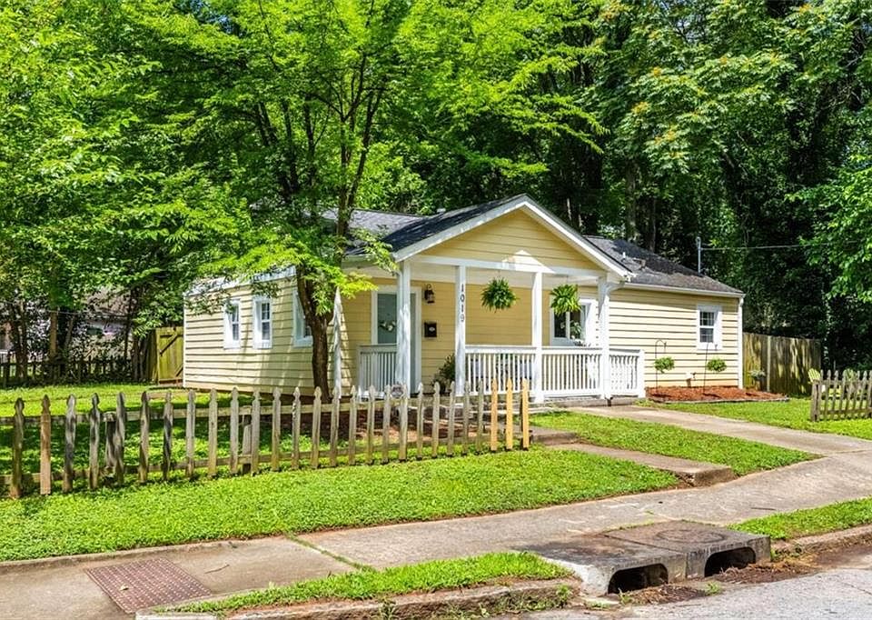 Charming intown bungalow on a tucked away street that backs up directly to the Beltline! Welcome to Grant Way, a quiet loop of sweet homes nestled between Grant Park's the Beacon and DH Stanton Park. A cheerful porch graces the front of the home and overlooks a sizable yard. Inside, you'll find an open concept living-dining-kitchen area with bright windows and eco-friendly bamboo floors. The well-appointed kitchen has wood cabinets, stainless steel appliances, and ample prep space for cooking and entertaining. The generous primary ensuite comfortably fits a king-size bed, and a small bonus room off the primary is the perfect flex space for an office. The comfortable secondary bedroom is the ideal spot for family or guests, and down the hall, you'll find a separate guest bath and dedicated laundry with washer/dryer. A fully fenced in backyard is the perfect space for pets and humans alike! Host epic tailgates, dinner parties, or manifest your urban homestead dreams. This low-maintenance home includes cement siding and a slab foundation so you don't have to mess with a crawl space. Current homeowners have installed custom wallpaper, updated light fixtures, HVAC (2023), & installed new gutters (2024). Roof/appliances/plumbing fixtures replaced in 2016 when sellers purchased the home, and new sewer line + clean out installed in 2017. Savvy buyers, this sweet home is placed on a large corner R5 lot (multifamily zoning + over 7000 sq ft lot)-- with proper permitting, this allows for the option of a tiny house/ADU or even up to 4 units on one property. Situated just steps from Beltline, The Beacon, Grant Park, GP Farmer's market, Zoo Atlanta & Summerhill dining and entertainment.