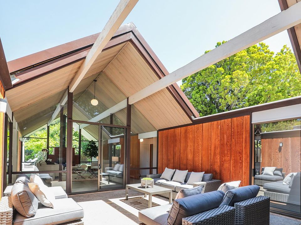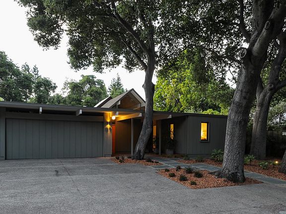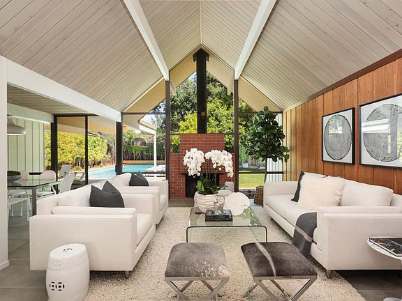 Just blocks from all that Rinconada Park and Lucy Stern Community Center have to offer, this home couldn't be more ideally located for family living. 5BR/3BA span 2,785sf of flexible living space in one of Joseph Eichlers most sought after floorplans. A retractable roof opens the central Atruim to the sky, and defines indoor outdoor living at its best. An abundance of light welcomes you as you enter the Atrium and extends throughout the open floorplan, extensively renovated in keeping with its contemporary heritage. The kitchen great room offers an eat-in option and formal dining, with walls of glass that open to the rear yard. The main family wing offers flexible floorplan options, and the kitchen wing offers another bedroom and full bath, as well as an office. A covered terrace sits to the side of a sparking pool and spa, and the 8,775sf lot is a private retreat of lush landscaping and fruit/citrus trees ideal for entertaining or al-fresco dining.