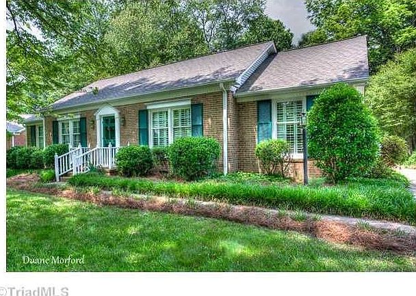 Feels like country living in the city. Brick three bedroom ranch backs to Guilford College woods, with access to Price Park and Jefferson school. Quiet, desirable Jefferson Gardens neighborhood. Hardwood floors in open kitchen/den area. Designer wooden blinds. Gas log fireplace. Patio and raised garden. Move in and enjoy!