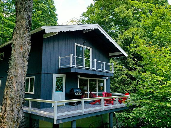 Enjoy all 4 seasons in this secluded Chalet only 6 miles to Jay Peak Resort! Offering a lifestyle full of skiing, hiking, biking and snow shoeing in your own backyard! Located in the private Alpine Haven community featuring tennis courts, pool, playground, disc golf, and volleyball. This 4-bedroom, 2-bathroom home has wonderful curb appeal and boasts a huge deck overlooking lush mature trees. Kick off your shoes in the lower level, fully remodeled in 2021, that hosts a spacious mudroom, 2 bonus living spaces, and a large utility room/storage zone! The warm and inviting second level Great room has a rustic fieldstone fireplace with cozy gas insert, cathedral ceiling, and huge windows over the deck that let in so much light! Convenient kitchen/dining area makes it easy to host large gatherings! Two well-appointed bedrooms and an updated full bath complete the main level. The upstairs is open to the Great room below, with a catwalk that leads to a lovely balcony at the top of the house! The perfect spot to sip your morning coffee or tea! Nicely updated 3/4 bath with white subway tile, huge primary bedroom that easily fits a king bed, and the 4th bedroom finish the 3rd level. Use it as a vacation home, Airbnb investment, or primary residence - this outstanding property won't disappoint! Selling fully furnished.