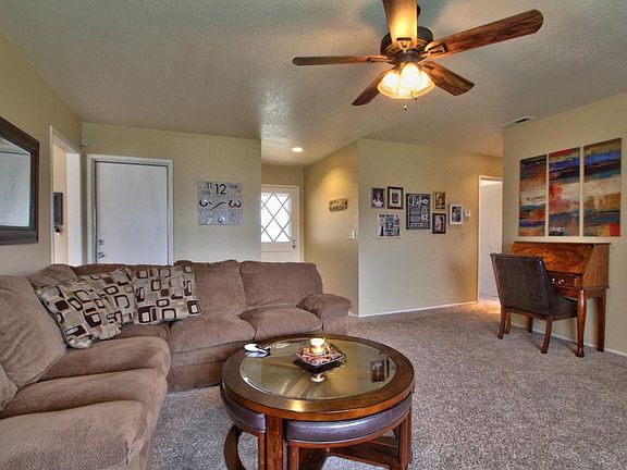 Immaculate Laurel West single level home shows much pride of ownership! Recent upgrades include new carpet throughout, blinds & ceiling fans. Great floor plan w/open living room & corner fireplace, eat-in kitchen & spacious BR's. Private backyard w/lawn, lime tree, dog run & detached playhouse/storage shed. 2 car attached garage w/extra storage. Amenities include alarm system, automatic sprinklers & solar powered lighting. A lovingly maintained home! SF/lot/size/age/school not verified by listing agent.