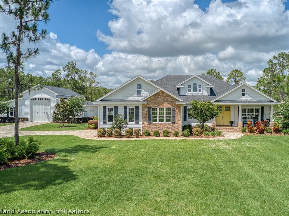 Lovely home on 4.15 acres in prestigious Highland Lakes Reserve - a gated community with estate sized lots. This home sits next to a preserve and has total privacy in the back! The front porch will welcome you through the double doors into a wide foyer. Open living concept with coffer ceilings in dining room (and master bedroom). Built in book cases in living room with gas fire place. Nice size kitchen with high end kitchen aid appliances and induction cooktop. Custom cabinets with quartz countertop. Walk in pantry with additional refrigerator, sink (wet bar) and cabinets. Split floor plan with utility room and 1/2 bath with marble vanity on master bedroom side. Wood floors throughout except in bathrooms and laundry room. Fabulous screened in back porch with tiled floors, outdoor kitchen area with gas piped in for grill and another gas line for a future fireplace if desired. Home has a large (and very tall) attached garage as well as a detached garage with a main drive through bay that has 14' doors - perfect for RV and includes a septic cleanout and 50 amp electric outlet as well as 3 additional side bays. Barn also includes a large workshop as well as an additional air-conditioned office/craft room/ etc. and includes a full bath and a 3rd refrigerator. This beautiful home has plantation shutters throughout, central vacuum with two sweep plates, concrete block construction with hardie board exterior as well as brick, LED lighting, security system on both home and barn, speakers throughout home and barn, gas hot water heater in home and open cell foam insulation in home as well as barn. Highland Lakes Reserve is 600 acres with only 155 home sites, minutes from downtown Sebring and approximately 1.5 hours to Sarasota or Ft. Pierce. Nature preserves throughout the community, two lakes, lakefront park with dock and ramp, underground utilities, city water and sewer! You'll enjoy the wildlife in this extremely peaceful neighborhood! One seller is a licensed realtor with the State of Florida