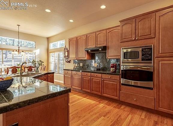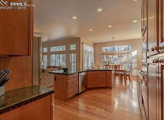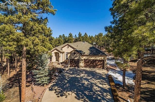 Under Contract & Taking Backups...This lovely custom home is nestled onto the over 1/2 acre lot & overlooks a thickly treed pine forest - Walk into the magnificent foyer & gaze through to the wall of windows onto more forest tranquility - Expansive English den w/wood panelling & bookcases could serve as a library or music room - Formal dining room w/trey ceiling is eager to host holiday meals & gatherings - Magnificent living room graces the kitchen entrance & shows off the custom bookcases & fireplace - continued... Inviting kitchen evokes an urgency to cook! Expansive walls of cabinetry w/42" cabinets, pantry, plenty of counter space & butlers pantry area & all open to the separate kitchen eating area that overlooks the forest & expansive composite deck - Spacious master bedroom suite in it's own wing of the house w/spa like bathroom complete w/walk in shower for two, soaking tub & large walk in closet - Guest suite & bath on the other wing of the house w/more views - Giant family room in basement perfect for entertaining the sporting event crowds - Spacious ensuite bedroom in basement plus two more large bedrooms & full bath - One bedroom (or pool table room) has walkout to patio area & is currently being used as an exercise room - some additional features include central air, built in speakers, 2 zone heating, 2 furnaces, 2 water heaters, epoxy finish on garage floor, new exterior Ameriplasty paint, Gutter Helmets gutter guards, 9 foot basement ceilings, extensive professional landscaping - close to all parts of Colo Spgs w/easy Hi25 access & access to DTC - lovely property shows pride of ownership & an enjoyment of the beautiful outdoor life that this neighborhood and area offer....