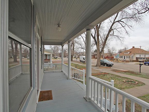 Beautiful Traditional Home w/ lots of charm & character. This 2 bedroom 1 bath is a perfect starter home. Starting on the covered front porch you will love this space for easy living in the summer. When you enter the living room you will find beautiful hard wood floors and access to the 1st Bedroom w/ a nice size closet & window out to the yard. Entertaining is a must in the traditional dining room that offers nice space, wood floors, a built in hutch & large bright windows. From here you access the Master bedroom that also has tall windows & a nice closet. The updated kitchen with all new appliances has a Laundry room off it with pantry space for food storage along w/ cupboards in the kitchen. There is an extra room leading off the kitchen which could be used as a sunroom, breakfast nook, or mud room. The 3/4 bathroom is located off the kitchen w/ newer amenities. A detached garage sits nicely next to the home with easy pull in & out and power for all of your hobbies or workshop needs. The fully fenced yard allows for a fire pit, concrete seating w/ pergola & plenty of garden space along w/ alley access. Centrally located and closet to schools, shopping and main highways.