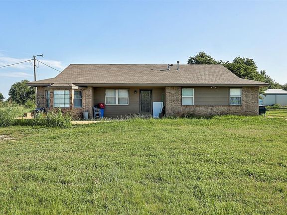 Charming home situated on 5 acres of land, this 4-bedroom, 1.5-bath residence is located just a short distance from the HE Bailey Turnpike, providing easy access to Mustang, Oklahoma City, Norman, and other surrounding metro areas. Upon entering, you'll be greeted by two inviting living areas that offer plenty of space for relaxation and entertainment. The walk-thru galley kitchen is designed for convenience and ensures easy hosting for indoor gatherings. The primary bedroom is a true retreat, boasting an open design that allows for ample space to accommodate a bed, desk, or even a cozy sitting area. One of the standout features of this property is the large shop located at the back. This versatile space offers endless possibilities, whether you're looking for a workshop for your hobbies, additional storage for your belongings, or even a covered parking area for your vehicles. Don't miss the opportunity to make this home your own!