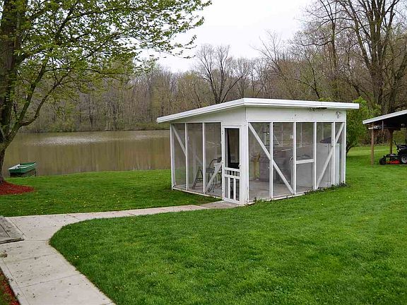 This home is a must see! Carefully remodeled 3 bed 2 and a half baths, with walk-in closets and charming layout. Look out large windows to the private lake containing bluegill, bass, crappie and more! A large covered porch with fan overlooks the lake and bordering Acres Land Trust. Close to walking paths and peaceful wooded area. Property also includes a screened in, detatched porch, a large out building 35x50 and 2 sheds 11x12 with 10x12 lean-to and 10x12 portable shed.