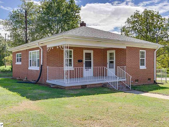 Darling, brick bungalow on corner .40 acre lot with circular driveway and two car detached carport. There are 3 separate entrances- one off the driveway through a screened in porch and two off the front covered porch. Hardwood floors, solid wood interior doors, upgraded back door, new vinyl windows, new architectural roof, new vinyl floor in the kitchen & breakfast rooms & freshly painted walls. The kitchen has a space for a dishwasher. The washer & dryer connections and the refrigerator water line are able to be switched depending on your preference for a stackable washer/dryer or side by side. A detached storage building also remains. Newer HVAC- all electric and hot water heater. This home is close to Cherrydale and only minutes from downtown Greenville. Has great rental history but would also make a great first time home purchase. Don't wait- priced to sell.
