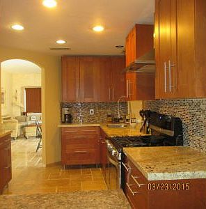 This Heritage home has been thoughtfully and beautifully remodeled with elegant detail not often seen in our homes. The kitchen has new cabinets, appliances , granite counter tops,glass tile back splash and is matched with the perfect floor tile floor. Even the light fixtures were given extra attention! The living room has tiled floors and large sliding glass doors for plenty of light and a view of the the lovely landscaped yard which which brings the outdoors inside! The living room has a fireplace and a bay window which makes a great area to relax in.The master bedroom is roomy and the master bath has double sinks, shower and tub with special designed cabinets both visual and practical pleasure. The office opens to a private patio area if you need alone time. Good sized second bedroom and inside laundry room. Large garage. The extra parking is just across the street!. The yard outside is xeriscaped and ready for your enjoyment . Newer cooler and high efficiency furnace. See now!