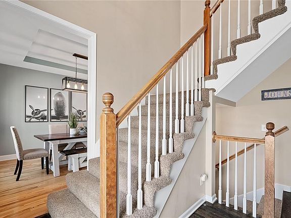 A new home for the holidays! Fantastic 2 story home in NW Olathe features 3 bedrooms, 2 full, 2 half baths, a finished lower level and so many updates! From the hardwood floors to the designer lighting this home is a welcoming space for entertaining and relaxation. Open Kitchen features gas stove, granite counters, backsplash, pantry, white cabinets and stainless appliances (fridge stays!). Formal Dining space with designer lighting. Big family room featuring shiplap accent wall and fireplace - such a cozy space, perfect for gatherings during the holiday season. Upstairs, you'll love the wood floors throughout and the Master Bedroom is the ultimate retreat with beautifully updated private bathroom and big walk-in closet. 2 good sized secondary bedrooms with hall bath. Finished lower level offers another dimension to the home, providing extra recreation space, an updated half bath & unfinished storage. 2.5 year old HVAC, 1.5 year old water heater. Big fenced yard with big deck & fire pit, perfect for entertaining and enjoying. Great NW Olathe location with easy access to highways, shops and restaurants.