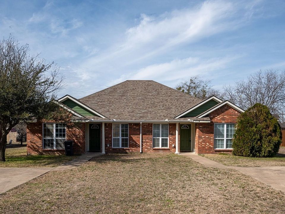 RARE OPPORTUNITY TO OWN FULL DUPLEX! Located in the fast-growing city of Anna. Each side has 2 bedrooms, 2 baths & 2 paved parking spaces for each side. Great open living area with split bedrooms. Laminate & tile flooring and window blinds. Lots of cabinets in Kitchen with Refrigerator. Built in storage attached to the back of the home. Covered patio. Nice large backyard with wood fence for privacy. One side is leased, the other ready to be leased and owner will provide details. No HOA. Original owner. Well maintained. The city has Several parks to enjoy. Many new restaurants along with medical and shopping.