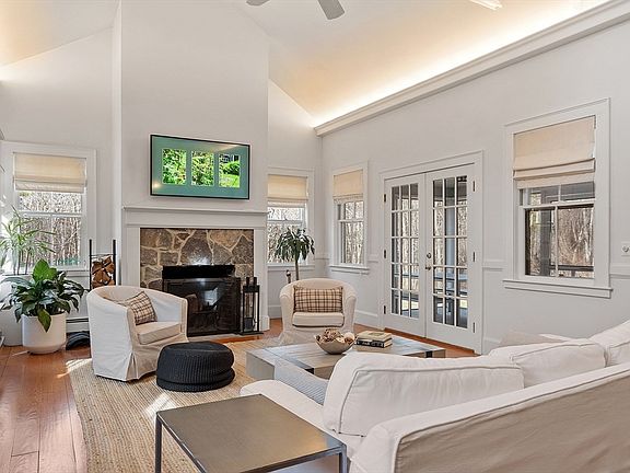 Set on over 3 acres of lush, park-like grounds, this home combines timeless architectural details with modern living spaces. The open floor plan features spacious rooms and beautiful hardwood floors throughout. The main level includes a large mudroom with two closets, a half bath, playroom, and laundry room. The living and dining rooms boast striking fireplaces. The gathering room, with its impressive brick hearth, flows into the kitchen with a fireplace and connects to a generous butler’s pantry. The stunning family room, with cathedral ceilings and a stone fireplace, opens to a screened porch overlooking the bluestone terrace and expansive backyard. Upstairs, you'll find four bedrooms, including a vaulted primary suite with peaceful views of the property. The primary also features a luxurious bath, two walk-in closets, a dressing room with a cedar closet, and a private study. The oversized heated garage includes a built-in workshop. A rare opportunity to become the next steward!