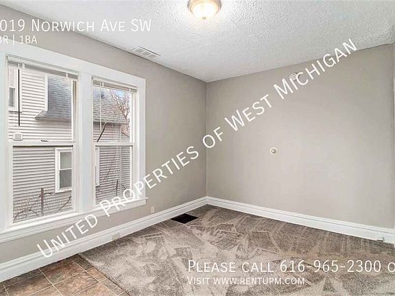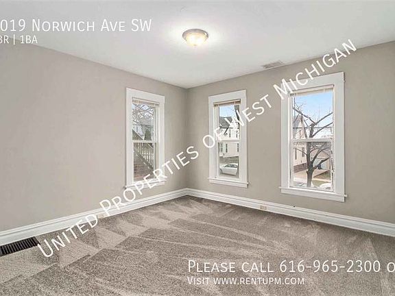 Living room 13.3x13.5Bedroom 13.5x11.1Bedroom 10.2x12.10Bedroom 8.11x10.7 Welcome to 1019 Norwich! This delightful 3-bedroom, 1-bath single-family home is nestled in the charming Black Hills neighborhood of Grand Rapids. With a cozy three-seasons porch, perfect for relaxing, and convenient off-street parking, this home offers both comfort and practicality. Inside, you'll find spacious living areas and the convenience of in-home laundry. Located in a friendly community, you're just a short drive away from downtown Grand Rapids, with easy access to local parks and amenities. Make 1019 Norwich your new home today! Once you submit an application, you can secure the property by paying a holding fee equal to one month's rent, which takes it off the market. This deposit later goes towards your security deposit. Depending on your credit score, the security deposit may be either one month's rent or one and a half times the monthly rent. If it's the latter, you'll need to pay the extra half before moving in. This property is offered by United Properties of West Michigan, the leader in property service since 2006, and the largest Property Management company in the greater Grand Rapids area with a 4+ star rating on Google! United Properties enrolls all tenants in our Resident Benefit Package, which includes monthly rental payment reporting to the major credit bureaus. This added benefit is $10 per month in addition to the monthly rent advertised on this listing. Welcome to West Michigan, where vibrant community living meets endless opportunities for adventure and comfort. Nestled amidst the natural beauty of the region, this dynamic area boasts a rich tapestry of culture, entertainment, and outdoor recreation. From the sandy shores of Lake Michigan to the scenic trails winding through picturesque forests, West Michigan offers something for everyone. At United Properties of West Michigan, we prioritize comfort and convenience, providing well-kept homes tailored to suit diverse budgets and lifestyles. From charming duplexes to cozy apartments and spacious single-family houses, we offer a range of options to accommodate every need. With scenic views and essential facilities, our residences embody the essence of West Michigan, providing you with a welcoming environment to call home, where you can truly live, work, and thrive. Experience the warmth of West Michigan hospitality as you explore its vibrant communities, each with its own unique charm and character. From the artistic vibes of Eastown to the bustling energy of Downtown Grand Rapids, you'll find a welcoming community that embraces diversity and celebrates individuality. Come discover all that West Michigan has to offer and let us help you find the perfect place to begin your next adventure. Welcome home to West Michigan where community, culture, and comfort await. We are eager to help find your new home, and help make the transition into your new home go as smoothly as possible. * Basement * Gas Furnace * Lawn Care Not Included * One Year Lease * Stove/Oven * Tenant Pays All Electric * Tenant Pays Trash Removal *Laundry In Unit *Tenant Pays Gas Near Transportation Porch Front Covered Porch Rear Covered Porch Three Season Updated Paint Color Vouchers Welcome Water Heater Electric