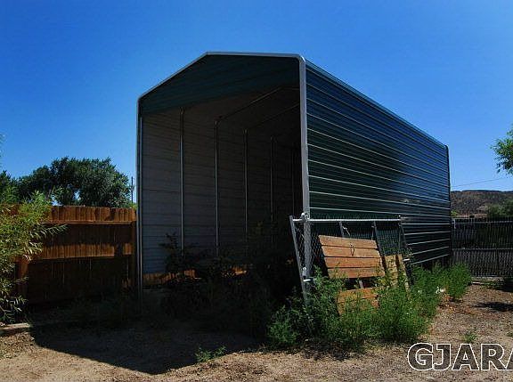 Upgraded two story modular with Corian in kitchen, built in gas stove-top and ovens, upgrade faucets,2 condensors for AC, walk in closets. Buildings exterior lap siding 30 yr. cement. Detached garage has 12 ft and 8 ft doors, second story storage, heated rec room, bath. Extra carport with 12 ft door for yacht, motorhome. Fenced back yard has children's playground, hard wired Hot tub, water feature created from historic wastewater that fills small pond for landscape water. All types of financing may also include RD loan. No covenants. Sewer co. is Mesa CO Lower Valley Pub. Imp. District. ZONING: present use residential but qualifies for Mack Overlay Tier I which indicates mixed use. Alternate address could be 1019 Hotel Circle.