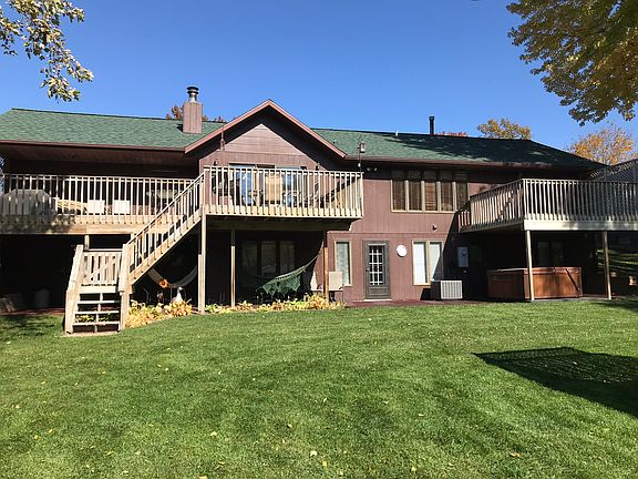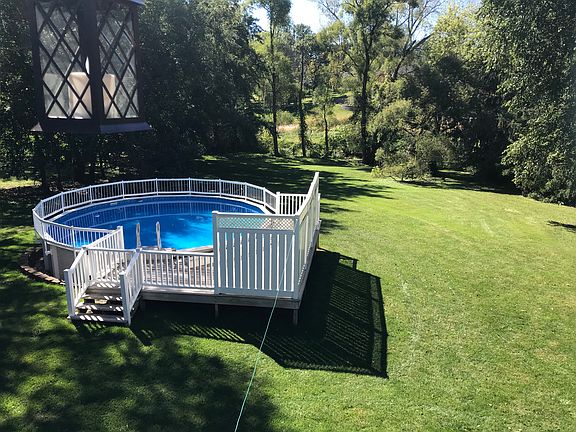 Completely renovated ranch style home with double garage, 2 decks-one out of the master bedroom, skylights and hard wood floors in kitchen, dinning room and fire place areas. Walkout basement with a large family room, an extra non-conforming bedroom and a tuck- under garage with possibilties to turn into a third and forth bedroom. Beautiful backyard with a heated pool and deck, playground, hot tub, a creek and lots of space for running, playing and practicing sports. Privacy is a must even when living in town.