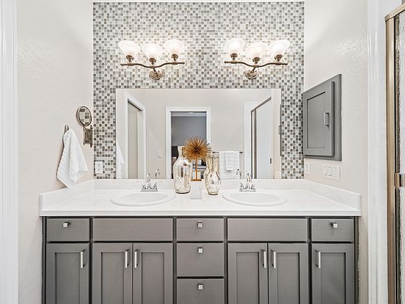 Gorgeous, light filled home on a tree lined street in the heart of the Twin Creeks Community! This recently updated property boasts high end finishes, soaring ceilings, designer lighting, hardwood floors, & over 2,100 sq ft of living space. Beautifully appointed main level primary suite featuring a dual sink vanity, private water closet, tile floors, intricate backsplash, plus an impressively large walk-in closet. Luxurious, modern kitchen w/all new SS appliances, oversized pantry, granite countertops, & chic tile backsplash. FABULOUS, professionally designed side yard w/a privacy area for dining, contemporary built-in planters, lighting, & convenient kitchen access. Perfect for indoor/outdoor entertaining! The 2nd level includes a spacious loft/bonus/office space, 2 oversized bedrooms, & lg bathroom w/separate vanity & shower area. Large laundry/mud room w/built-in cabinetry & 2-car rear loading garage w/storage closets. Within minutes of schools, downtown Central Point, & I-5 access!
