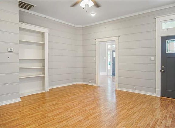 Built circa 1911, this historic home is alive and well with modern aesthetics. Upgrades include all-electric appliance and utility connections, new roof, newer vinyl windows, new 200 amp electrical system with an underground service line, new central heat and air, new plumbing, and new flooring! Inside, ten foot ceilings and large windows enhance the generously-sized living areas. Outside, spend some time relaxing on the wrap-around porch or enjoying the shade of the old oak tree. It's time to come home!