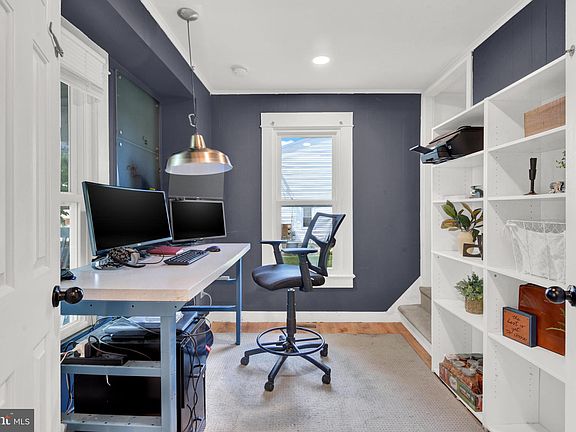 Charming and updated Foursquare set just outside of the beloved town of Hampstead with an inviting front porch and large, flat, fenced yard backing to farmland. Enjoy your morning coffee on the large porch overlooking the shaded garden or walk to local spots. Inside, the open floor plan lined with mid-tone luxury vinyl plank flooring is perfect for entertaining! The front Dining Room opens to the Living Room which connects to the modern eat-in Kitchen. The spacious modern Kitchen includes two-tone shaker cabinets, quartz countertops, a farm sink and stainless steel appliances. There is access to the Laundry Room and Powder Room by the Kitchen as well as the back porch that is ideal as a Mudroom too. There is an Office on the main level that could also be a private playroom space if needed. Upstairs, the bright Master Bedroom overlooking the backyard and farmland includes a double closet and is conveniently right across from the beautifully updated and spacious Bathroom with double vanity. Two more bedrooms with closets work perfectly for the growing family! Just about everything was updated in 2019 including brand new HVAC and hot water heater! Get ready to entertain this summer in the backyard complete with a fire pit area, swingset, large shed and plenty of space to play! In the evening, take a stroll through the quiet back streets and enjoy the convenience of being right by the small town of Hampstead that was voted as one of the best towns to raise a family in Maryland. There are lots of restaurants, shops and fun events to explore!