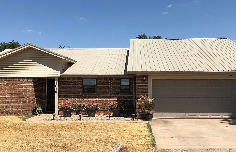 This home has 3 Bedrooms, 2 Bathrooms, the master suite has 2 his/her closets (1 walk-in with built in shelves). The living room area has a gas log fireplace with a built in book shelf. The kitchen has stainless appliances with granite countertops and tile backsplash, the kitchen also has a built in bar and built in shelves. This home was also recently updated with modern paint colors, new ceiling fans, new storm doors and exterior doors installed, new hot water tank installed, Interior Garage Storm Shelter was installed in 2016, this home has 1639 Sq. Ft of Living Space w/CH&A and has a spacious fenced in back yard with a covered patio. This home is located in a quiet neighborhood just outside of town but in city limits, Estimated Taxes are $557.68 the home was built in 1980. Please call 405-933-2707 if you would like to look at my home.