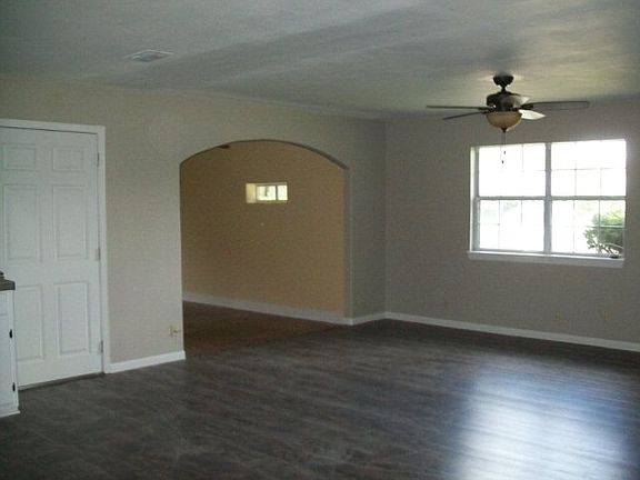 HOME FRESHLY RENOVATIED!! Fresh paint, new ceiling fans, lights, faucets, doors, flooring, tile counter top and more. Open the door to a freshly painted open living area with arched doorway to family room. This home has three or four bedrooms and two baths. There is a small room for workouts, playroom or what ever you want. Large back porch across back of home. GREAT FOR COOKOUTS!! Privacy fenced backyard with storage shed. A MUST SEE!!