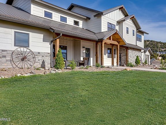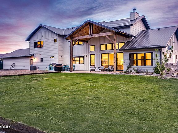 NEWER Mountainside Farmhouse with magnificent views of the valley AND the mountain! Built in 2019 with a modern style, open concept floor plan and as many windows as would fit, this is as close to living in nature as it gets...with all the modern conveniences. Home sits at a high vantage point, nestled on 5 acres that backs to the National Forest at the base of Flat Top Mtn, providing privacy & tranquility. One of the finest custom built homes in Arizona's White Mountains with custom touches throughout & unobstructed, pristine views from every room! Exterior features EXQUISITE curb appeal with grass, wood beams/posts, attractive SmartSide siding & metal roof keeps maintenance low & durability extremely high. The circular driveway & concrete steps lead you to the front door, crossing a