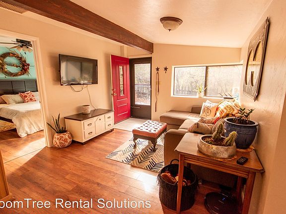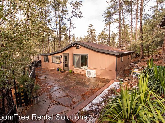 Two Bedroom + Studio in the Mountain Club of Prescott - Tranquil two bedroom, one bathroom home nestled in the pines of the Mountain Club in Prescott ready for you to call it home in February! The main house features almost 983sf with a roomy living room, dining area, great spacious kitchen with knotty alder cabinets and all appliances, large laundry room, split floor plan of two bedrooms and one bathroom PLUS a separate studio of approximately 330sf of endless possibilities. An open deck faces north and a large flagstone patio on the west for you to enjoy the tall pines that surround the home. Gas heat and room refrigeration. Parking for max two cars. Storage shed included, fenced dog run and a designated BBQ pad. Washer and dryer will be changed out with different ones and are As-Is. Sorry, no students. MAX one small dog - deposit and insurance required.com (RLNE5430772)