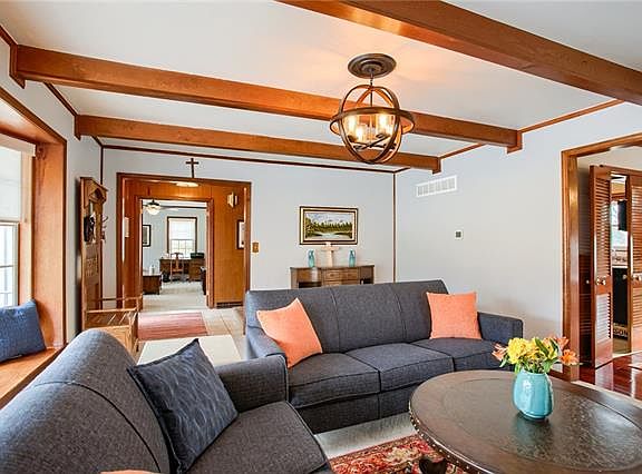 Very cool 1960's house, loads of charm, fireplace, wood beams, wood floors, enclosed breeze way 2/vintage brick bbq grill, breakfast/butler pantry area, 2 large bay window seats, office nook off up stairs brm, finished "secret" attic room, full basement great for storage/workshop and a relaxing deck and patio area to enjoy outside living. New HVAC. Check out this lovely 1 1/2 story charmer on huge lot and just a short golf cart ride away from the golf course and club! (Taxes based on 2019)