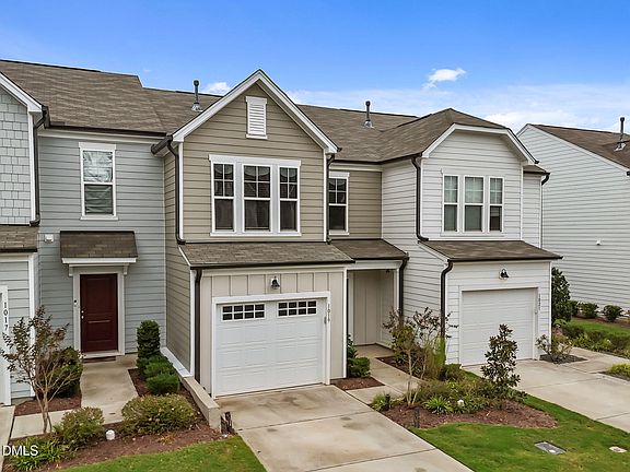 This immaculate, move-in ready townhome offers a bright, open floor plan and plenty of upgrades. The kitchen features granite countertops, subway tile backsplash, cabinets with crown molding, stainless appliances, including gas stove, a hands-free faucet, and a large island with pendant lights. Luxury vinyl plank floors flow throughout the main level and on the stairs. The three sunny bedrooms upstairs include a large primary suite with a spacious walk-in closet and bathroom with dual vanities and walk-in shower. There are 2-inch blinds in all bedrooms. A convenient upstairs laundry room makes everyday living easy. Relax or entertain on your fenced backyard patio where landscaping provides plenty of privacy. The sunset views from the patio and primary suite are stunning! The owner has taken excellent care of this home. The neighborhood offers an easy commute and is just minutes from major roadways, Brier Creek, Research Triangle Park, RDU Airport, downtown Durham and Umstead Park.