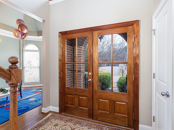 WELCOME to TAYLORS COVE! This custom built home on almost half an acre offers 3 bedrooms 2.5 bathrooms, great room with 2 story ceiling, formal dining room with turret window, OPEN FLOOR PLAN from kitchen to great room, Chef's kitchen has center island, stainless appliances and breakfast area. Spacious Primary Bedroom on main level and luxurious bath has double vanities, jetted tub, separate tile shower, large walk in closet. Main level laundry room. Up the grand staircase is a unique landing area, 2 bedrooms and a full bath. The unfinished basement area is framed, wired, and ready for expansion with an additional 2 rooms and plumbing is stubbed for a full bath. Plenty of parking options: 3 BASEMENT garage spaces. Garage is man cave ready - just like a room with painted sheetrock walls and drop ceiling. Covered and screened deck is a great entertainment area. Upgrades: Sprinkler system, gas hot water heater, shining Hardwood flooring, beautiful landscape. Don't miss this one!
